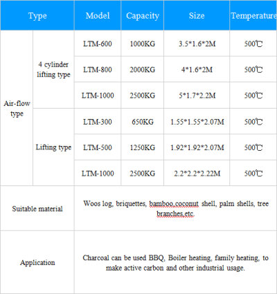 PS 2: Load 2tons natural wood, 8-10hours will get 600kg-800kg natural charcoal.