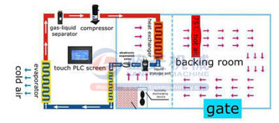 Heat pump is essentially a lifting device. Heat pump drying unit by the inverse Carnot principle, absorbs heat from the surrounding environment, and pass it to the object to be heated, it works the same as with the chiller, it is in accordance with the reverse Carnot cycle work. The only difference is the operating temperature range is not the same.